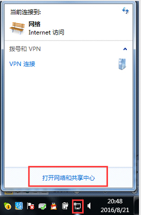 方法二:点击(打开网络和共享中心)