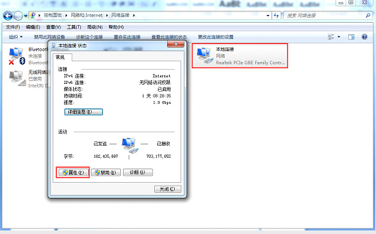 双击本地连接后,点击属性
